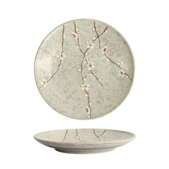 Cette magnifique assiette creuse japonaise en porcelaine bleue est décorée de délicates fleurs de cerisier (Sakura) en relief, symbole de beauté et de renouveau au Japon.