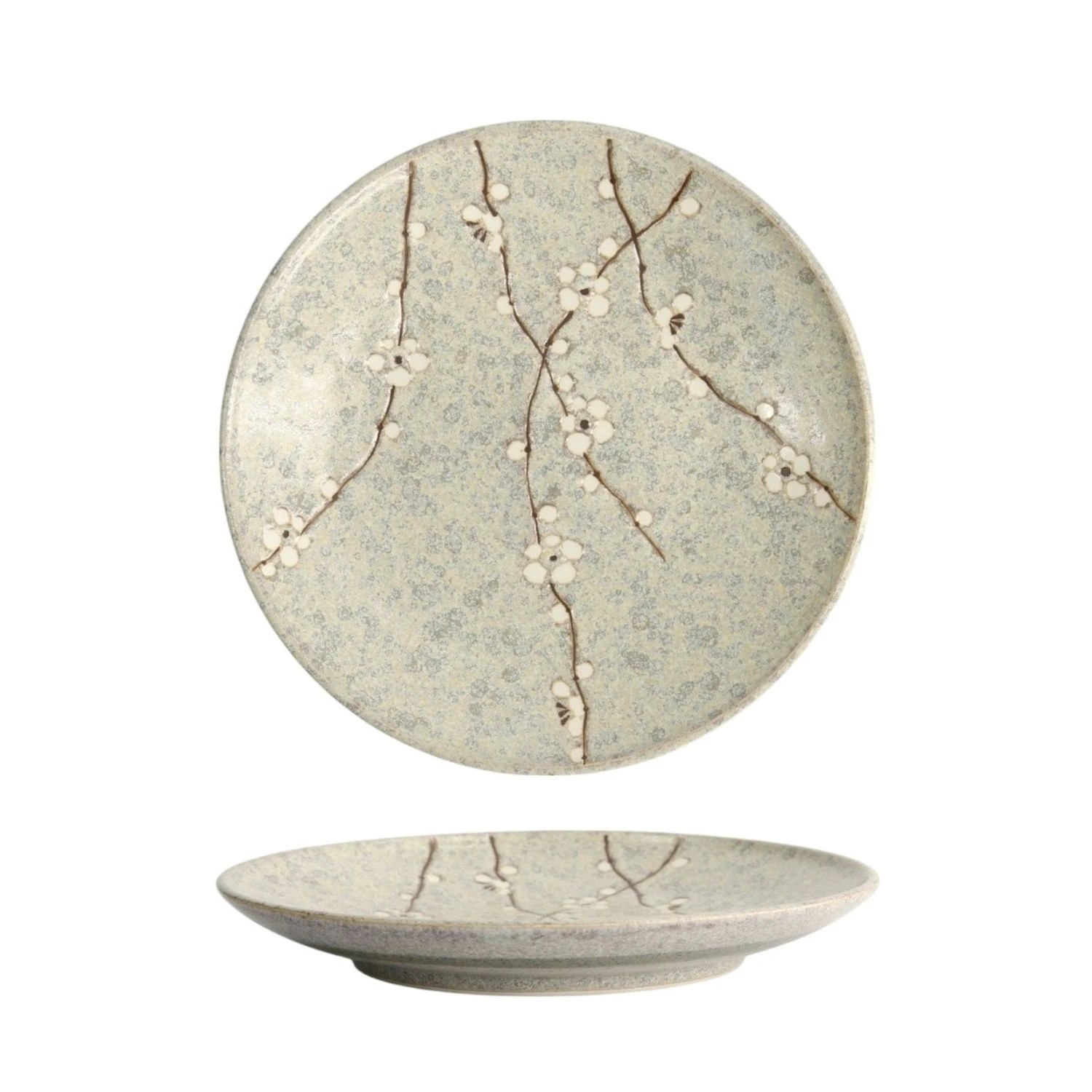 Découvrez l’assiette japonaise Gris Soshun, une pièce élégante inspirée des premiers jours du printemps. Son décor de branches de fleurs de cerisier apporte une touche délicate et traditionnelle à votre table.