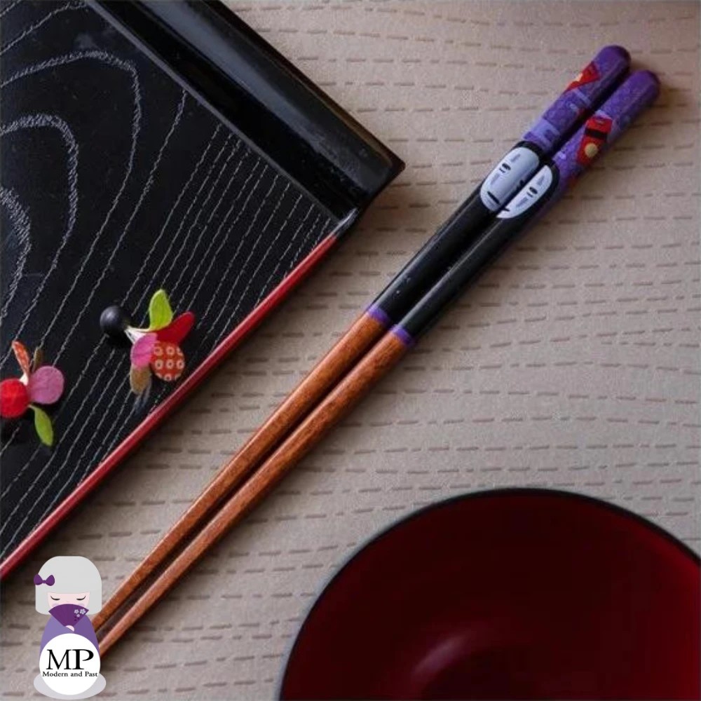 Modern and Past vous propose ces superbes baguettes japonaises laquées à l’effigie du Sans-Visage (No Face), personnage culte du film Le Voyage de Chihiro de Hayao Miyazaki.