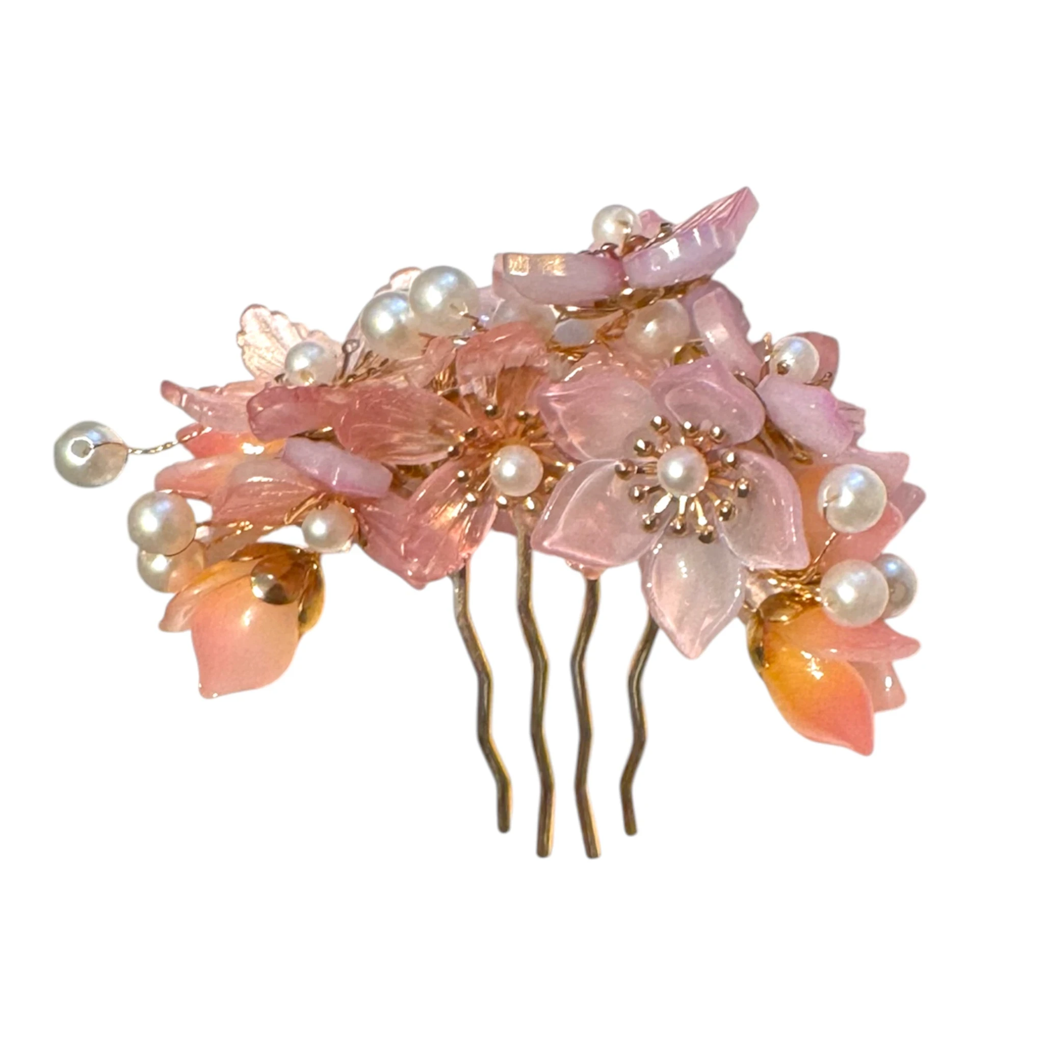 La barrette à cheveux japonaise fleurs roses et perles séduit par son style élégant et son inspiration florale délicate.