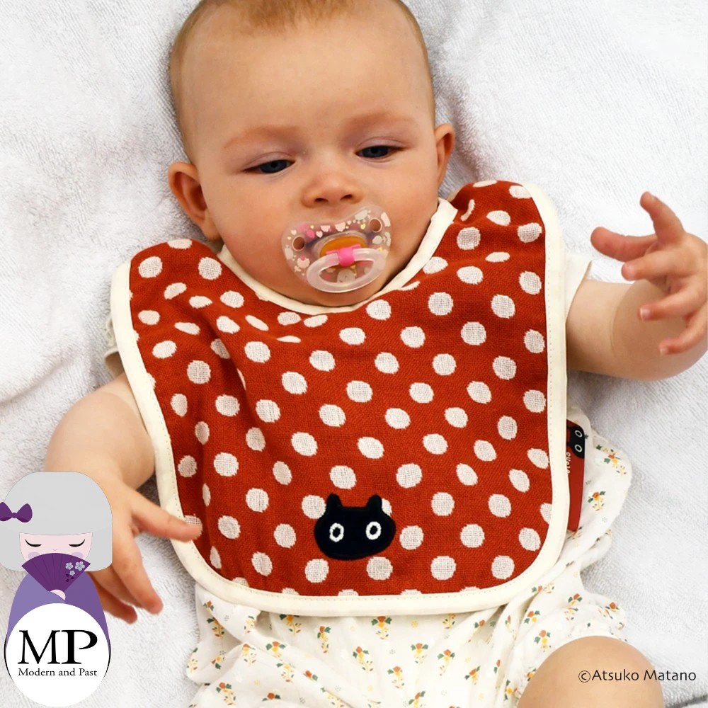 Ce bavoir japonais pour bébé est confectionné en coton de haute qualité, dans une délicate gaze douce et respirante. Son coloris rouge à pois blancs est sublimé par la célèbre tête de chat Mémé, emblématique de l’univers de Atsuko Matano. Conçu pour le confort quotidien des tout-petits, ce bavoir allie esthétique japonaise, praticité et finitions soignées.