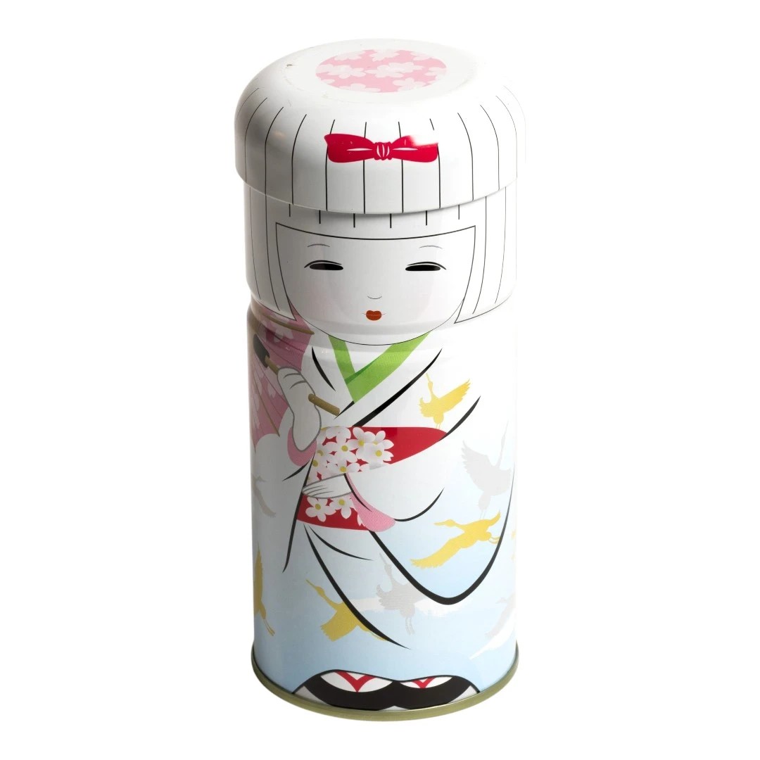 Boîte à thé japonaise Kokeshi en métal