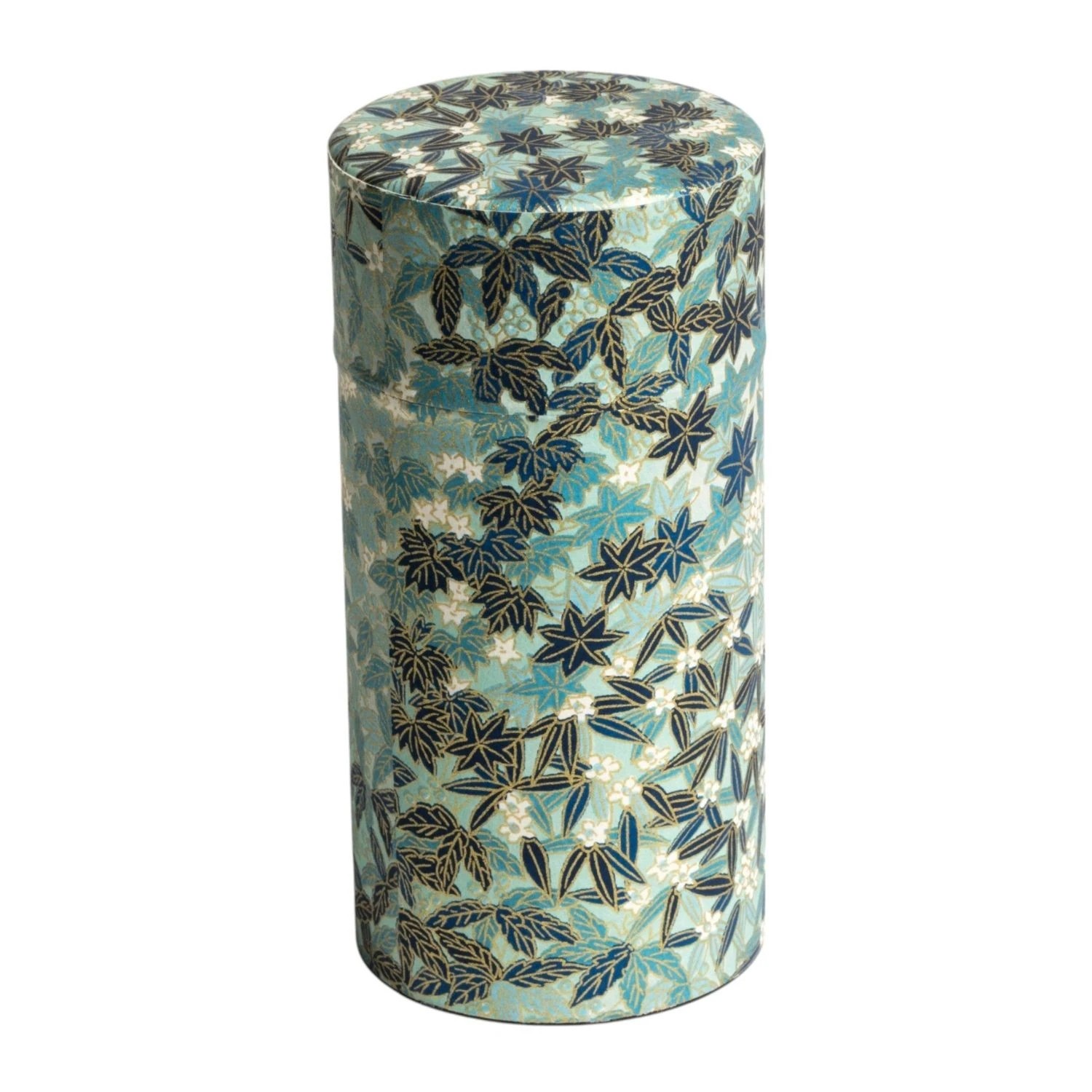 Modern and Past est heureux de vous présenter cette boîte à thé japonaise en métal et papier washi, décorée d’un motif raffiné de feuillages et fleurs bleus.