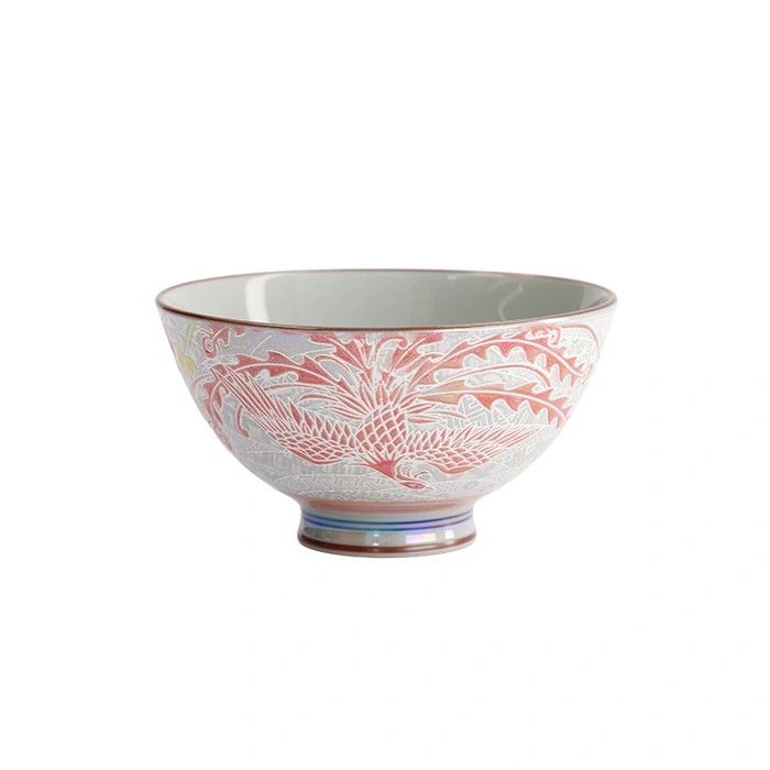 Modern and Past vous propose ce bol japonais Phoenix rouge, une pièce raffinée en porcelaine décorée d’un phoenix à l’intérieur et d’un somptueux motif rouge en relief à l’extérieur.