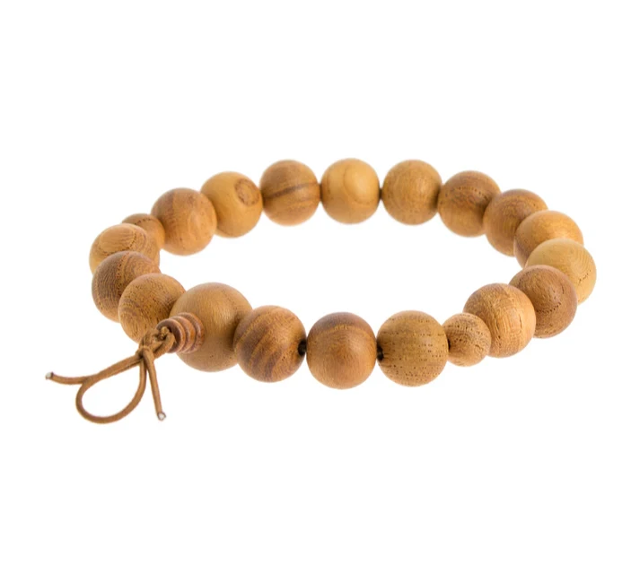 Le bracelet mala Nenju Keyaki est réalisé en bois de zelkova, un arbre noble emblématique du Japon.