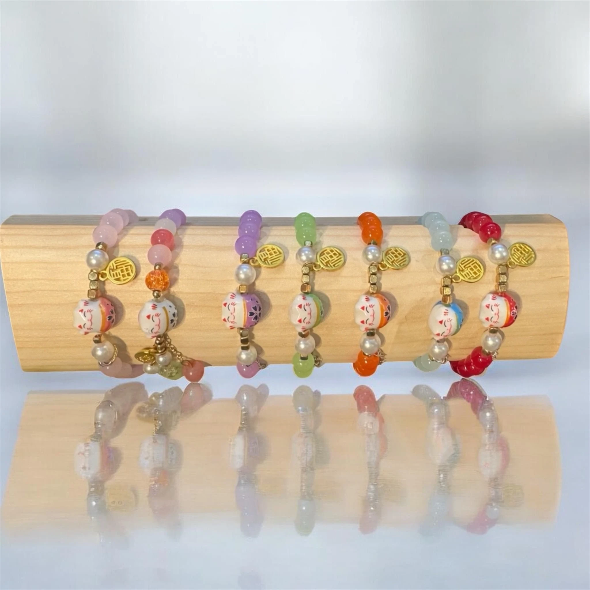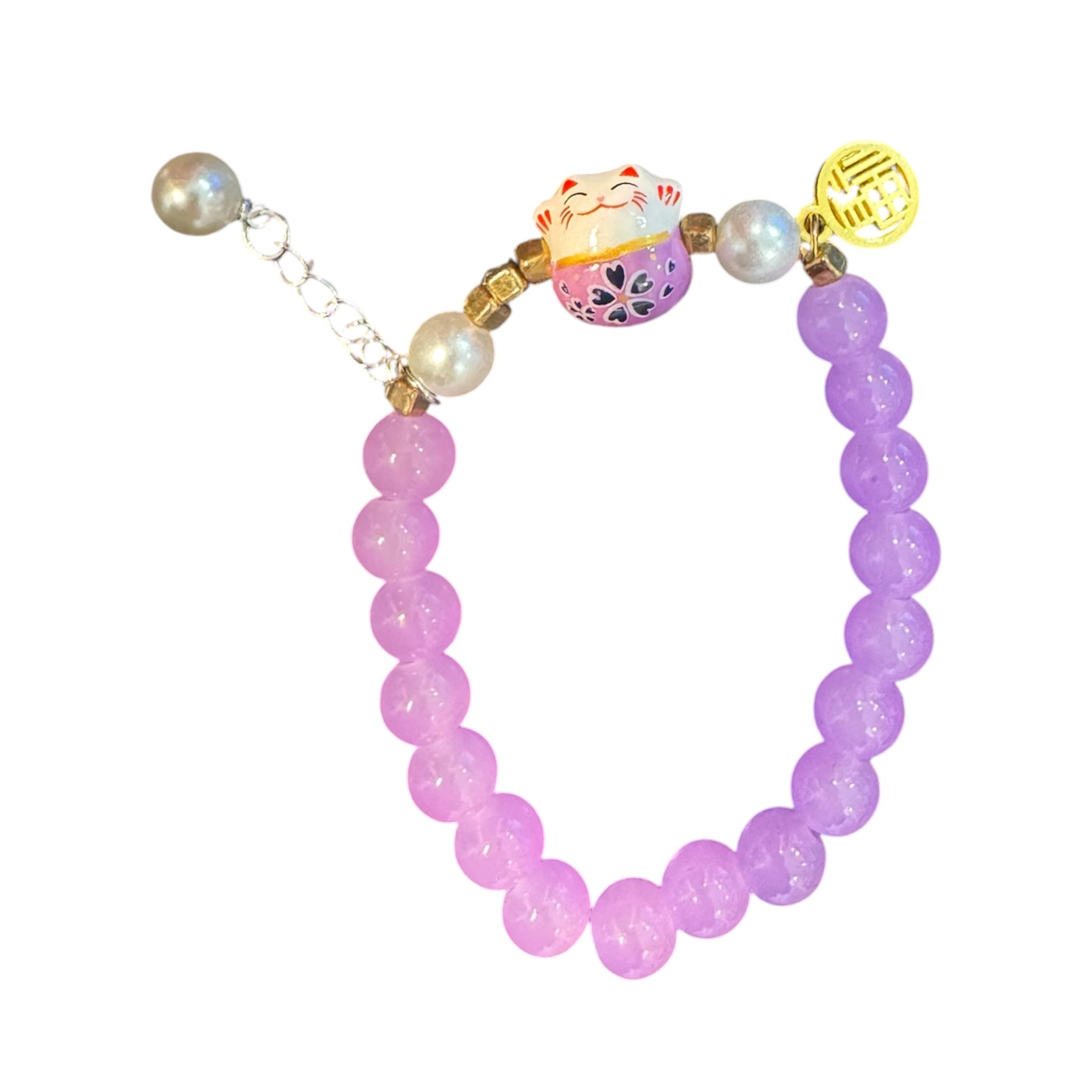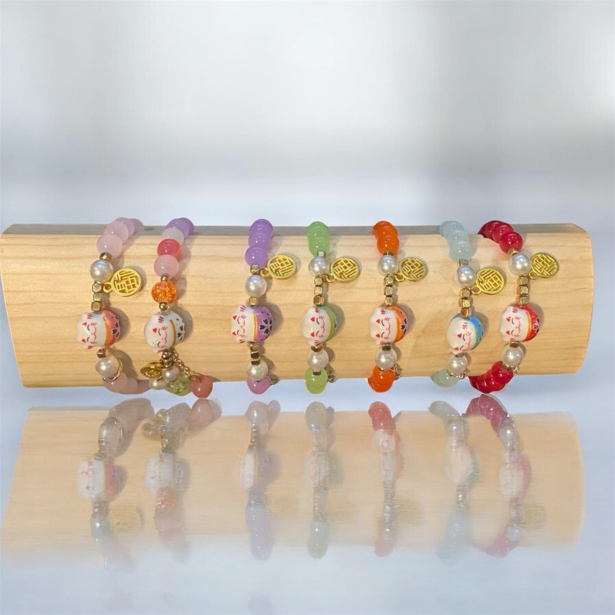 Un bracelet japonais chat Neko en perles de verre, symbolique et facile à porter