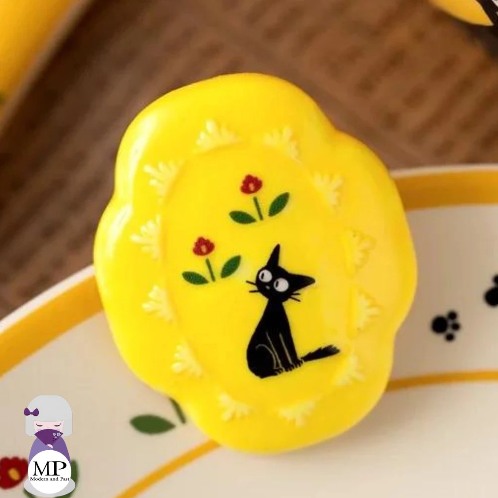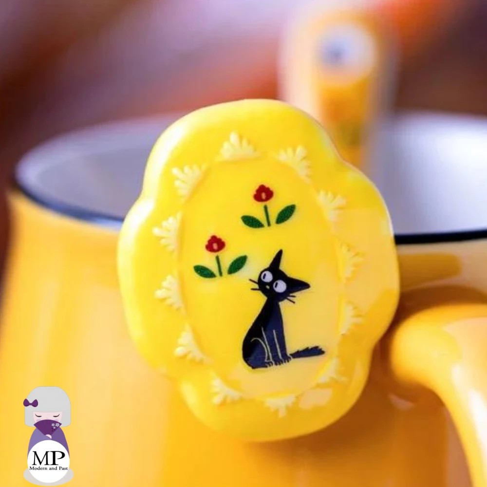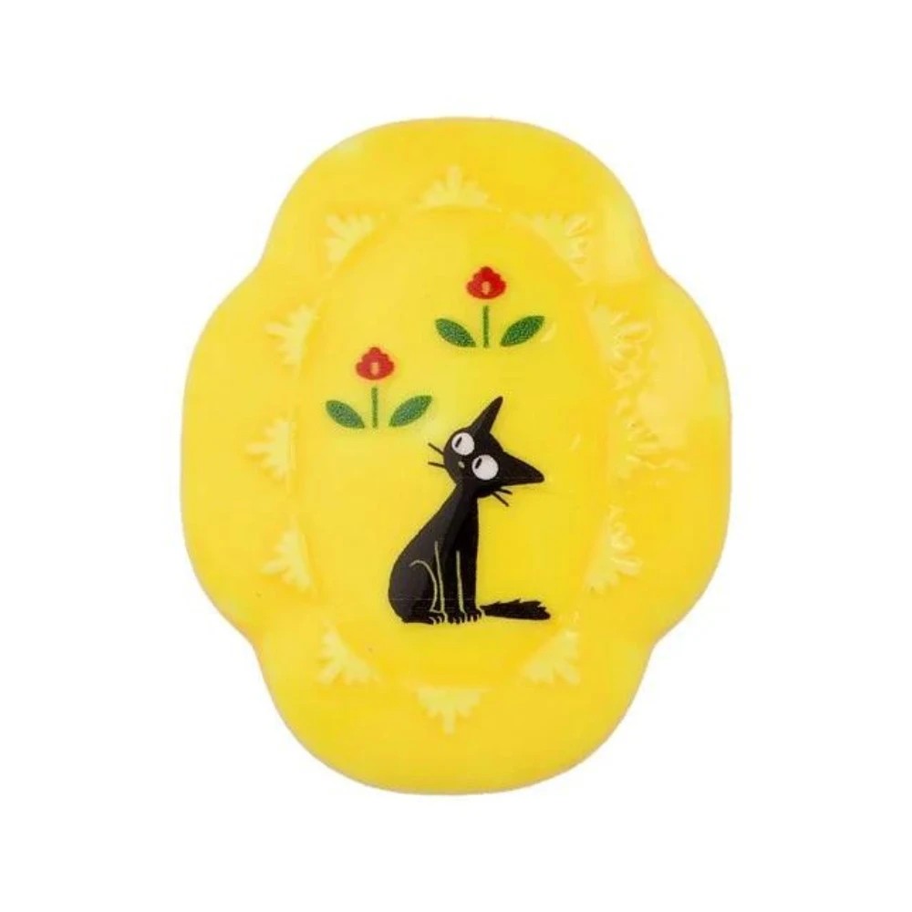 Cette broche Jiji met à l’honneur le célèbre chat noir du film Kiki la petite sorcière, figure emblématique de l’univers Studio Ghibli. Son fond jaune lumineux apporte une touche chaleureuse et élégante à vos tenues, tout en restant discrète et facile à porter.