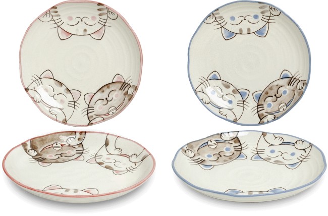 Assiette Japonaise Neko Kawaii – 3 Chats Souriants (Bleu ou Rose)