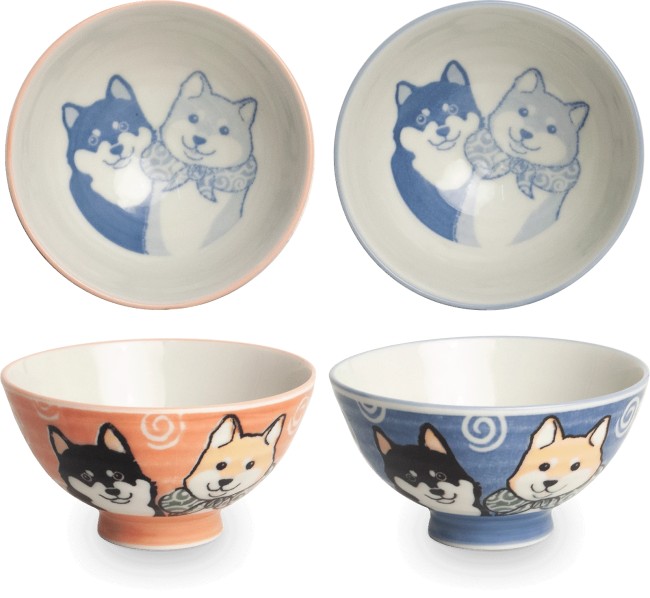 Bol japonais Shiba – Couple de chiens (Rose / Bleu)