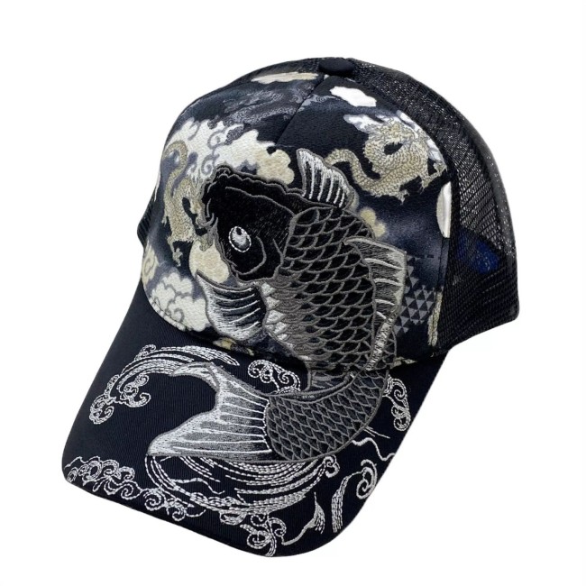 Explorez notre collection de casquettes japonaises brodées, inspirées du style Sukajan. Réalisées en coton haut de gamme, elles mettent à l’honneur les symboles forts du Japon : carpe Koï, dragon, fleurs de Sakura, la mer ou encore les dieux du vent et de la foudre.