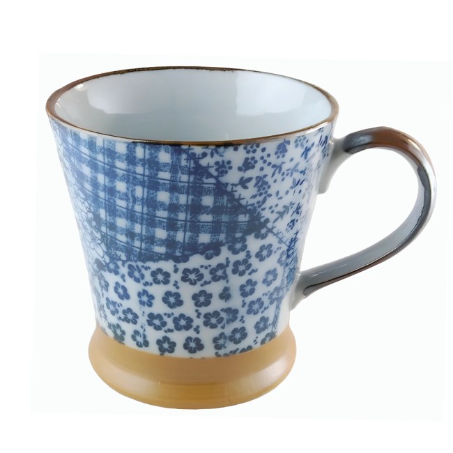 Mug japonais Patchwork Bleu en faïence – Fabriqué au Japon