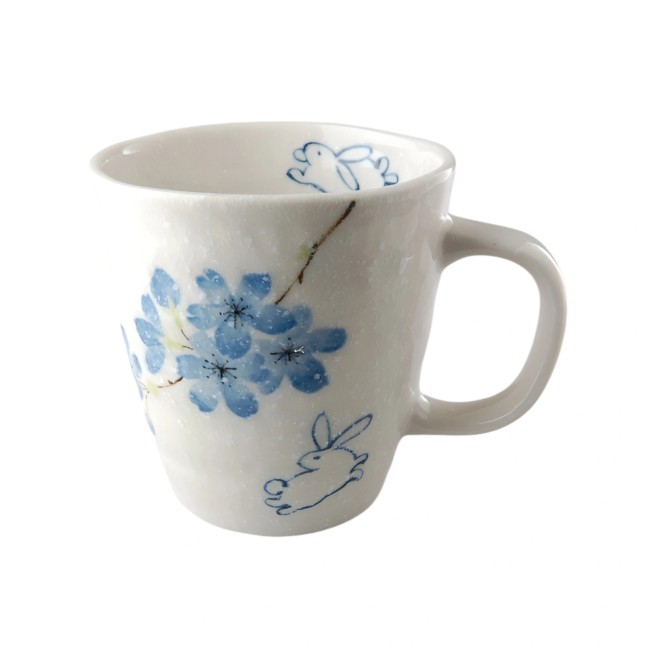 Tasse japonaise Hana Usagi Bleu – Lapin et fleurs – Porcelaine artisanale