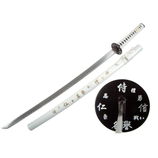 Katana de décoration japonais blanc – Motifs Kanji – 98 cm