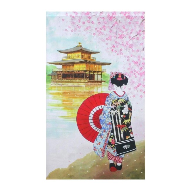 Noren japonais Sakura Kinkakuji – Rideau de porte fabriqué au Japon