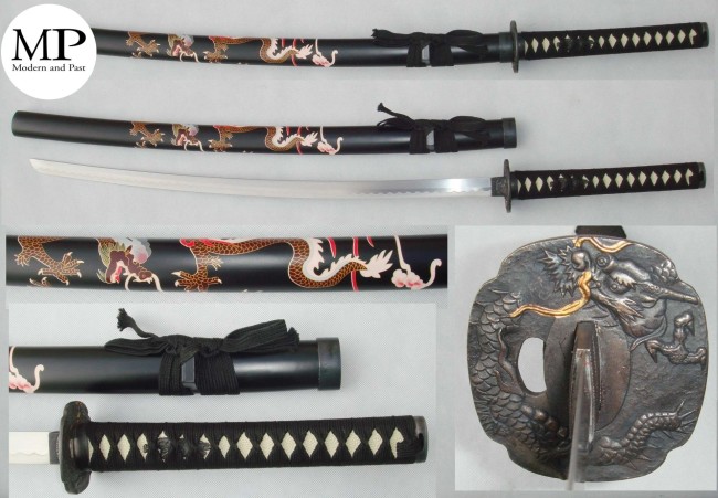 Katana de décoration japonais noir – Motif Dragon – 105 cm