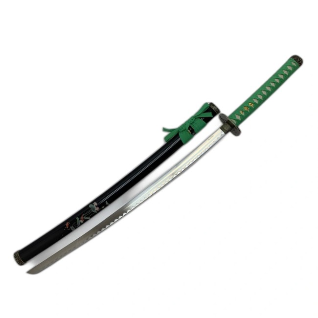 Katana de décoration japonais noir et vert – Motifs floraux – 103 cm
