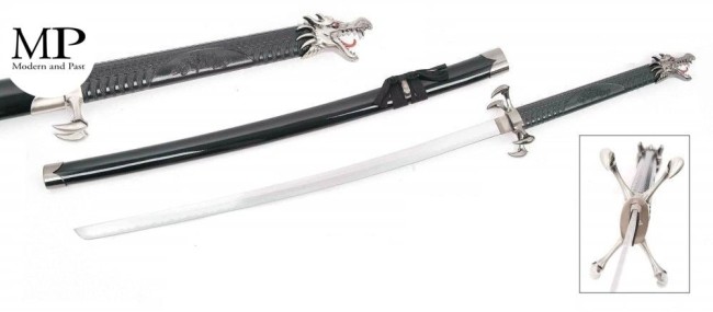 Katana de décoration japonais noir – Tête de dragon – 103 cm