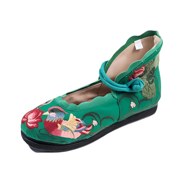 Chaussures asiatiques vertes en coton canards brodés