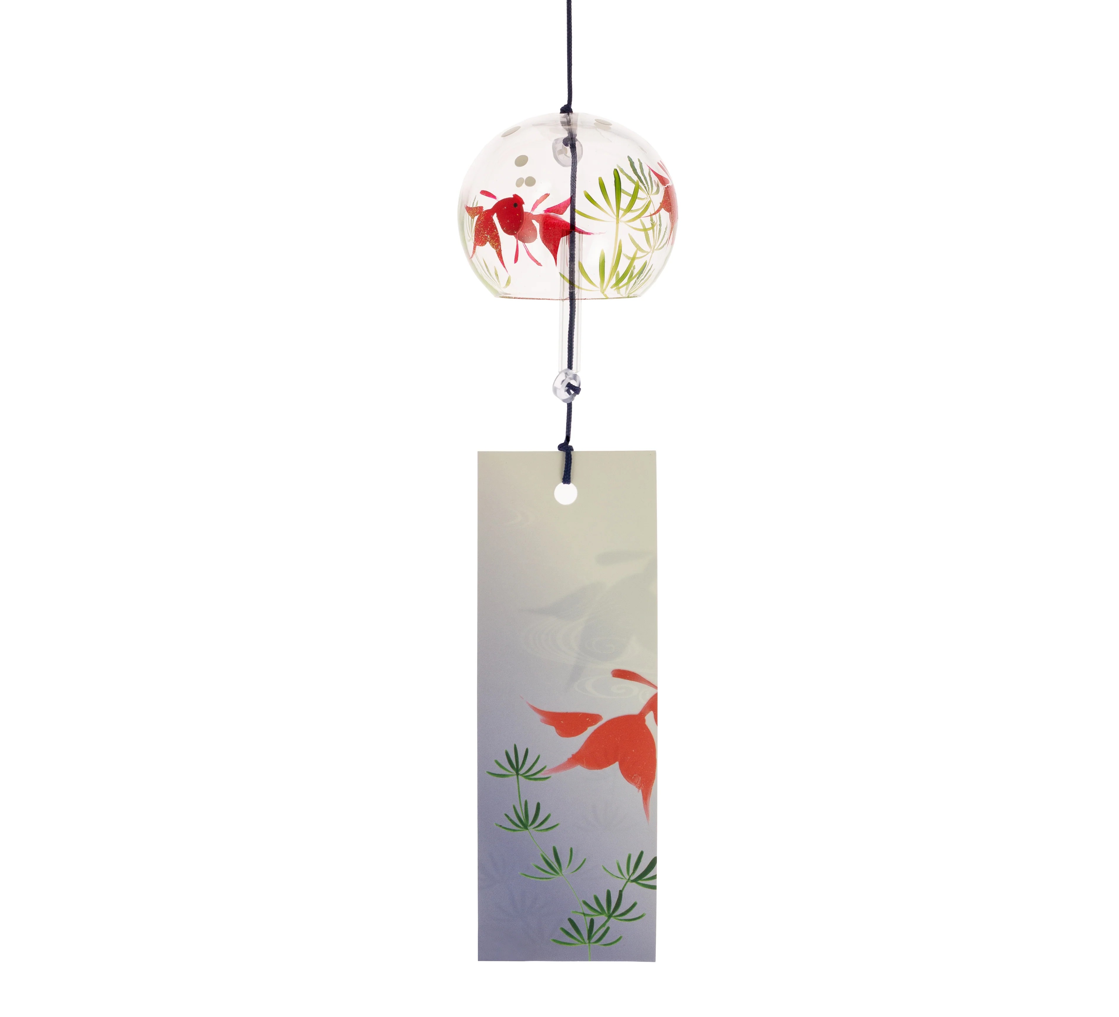 Ce furin japonais en cristal Kingyo est un carillon éolien traditionnel dont le tintement clair et rafraîchissant apaise les journées estivales. Fabriqué en verre soufflé artisanal et peint à la main au Japon, il met en scène une carpe dorée, symbole de chance, de persévérance et de réussite. Son verre épaissi à l’embouchure enrichit la sonorité, tandis que la girouette en papier se met en mouvement au moindre souffle de vent.