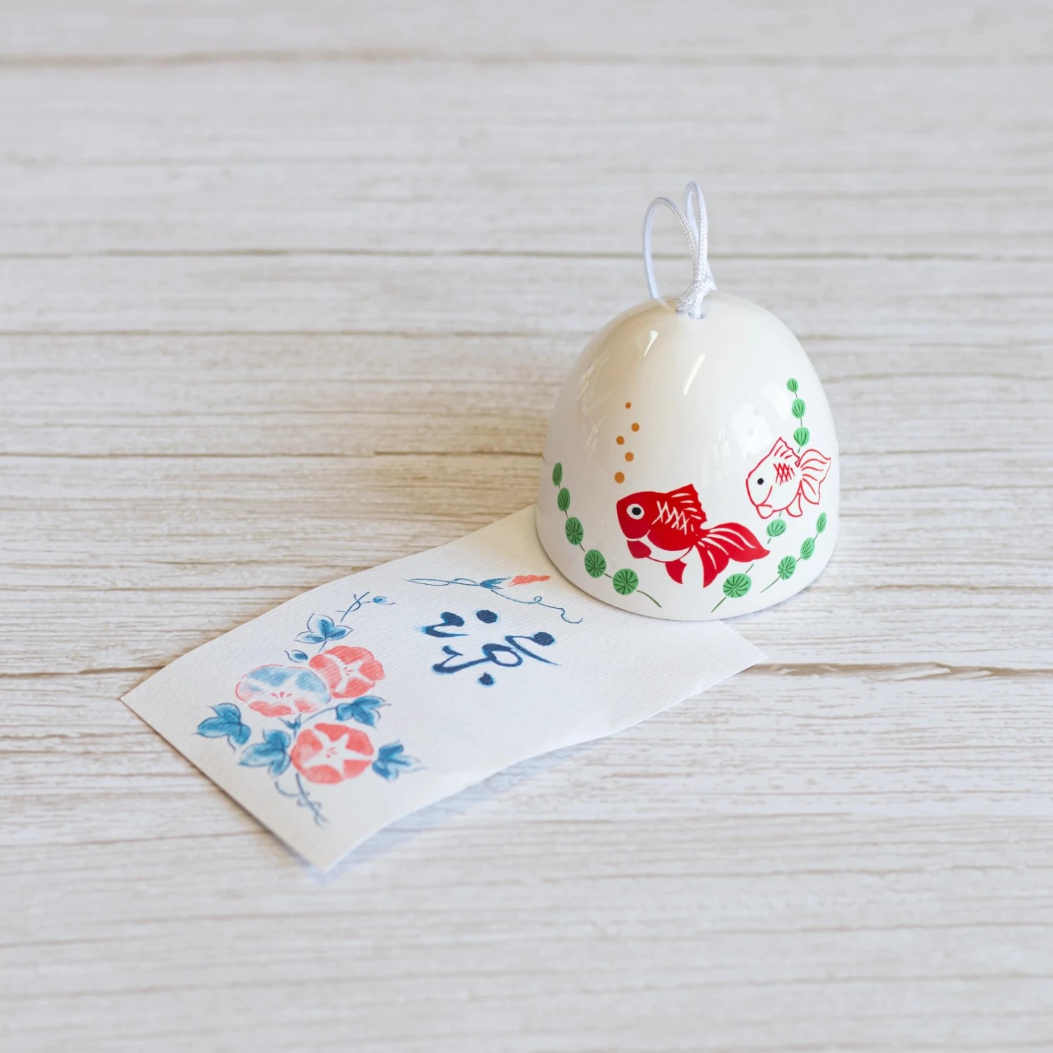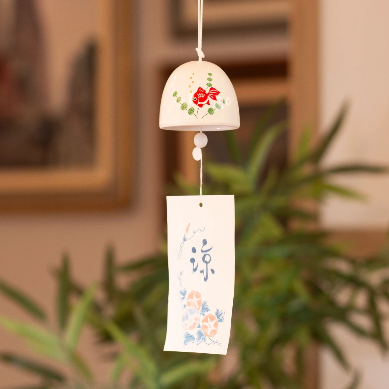 Cette cloche Furin japonaise Rankaku en céramique est décorée d’un délicat motif de poisson rouge, symbole d’été, de sérénité et de prospérité au Japon. Suspendue dans un jardin, sur un balcon ou près d’une entrée, elle diffuse un tintement doux et rafraîchissant qui favorise la circulation de la bonne fortune et contribue à l’équilibre du chi dans la maison.