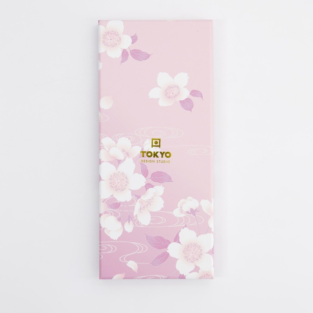 Chaque paire est fabriquée en bambou clair et ornée de délicates représentations de la fleur de cerisier, symbole de la beauté éphémère au Japon.