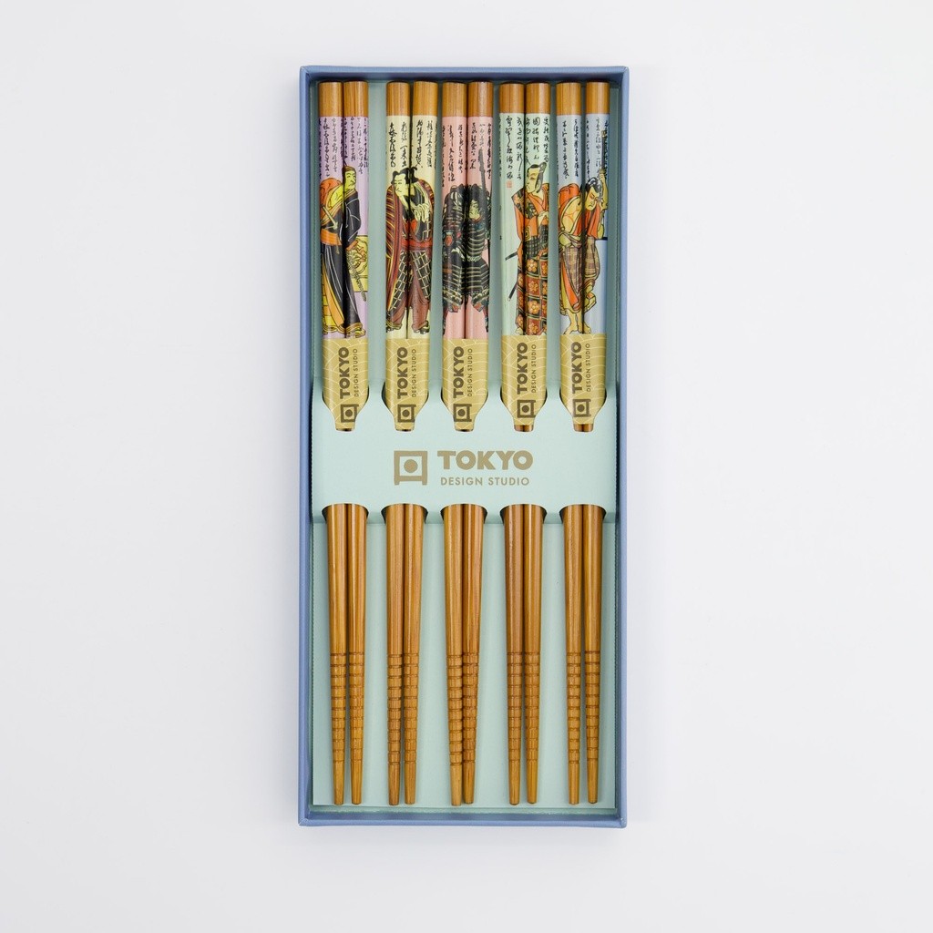 Ce coffret de 5 paires de baguettes japonaises “Sumo” met à l’honneur la force et la culture des guerriers de l’époque féodale japonaise.