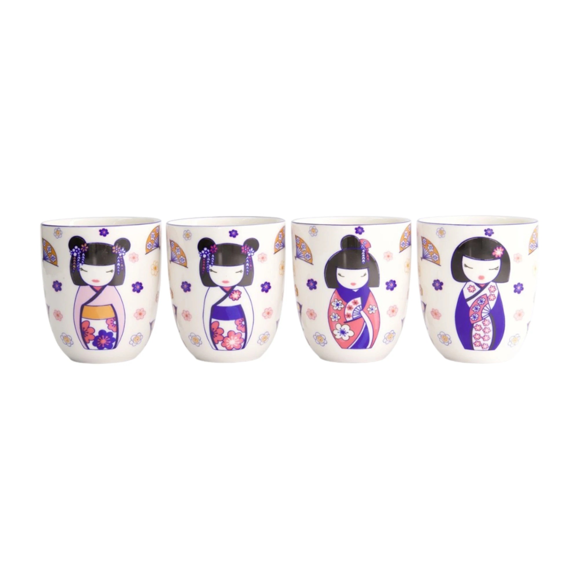 Offrez ou offrez-vous un moment de douceur avec ce coffret de 4 tasses japonaises inspirées des Maiko Kokeshi, ces adorables poupées traditionnelles japonaises.