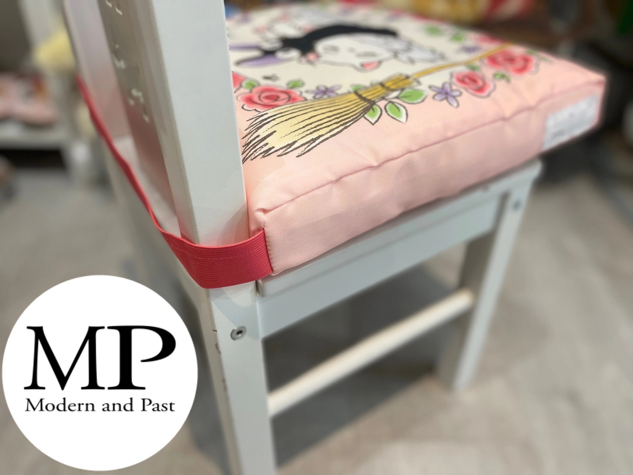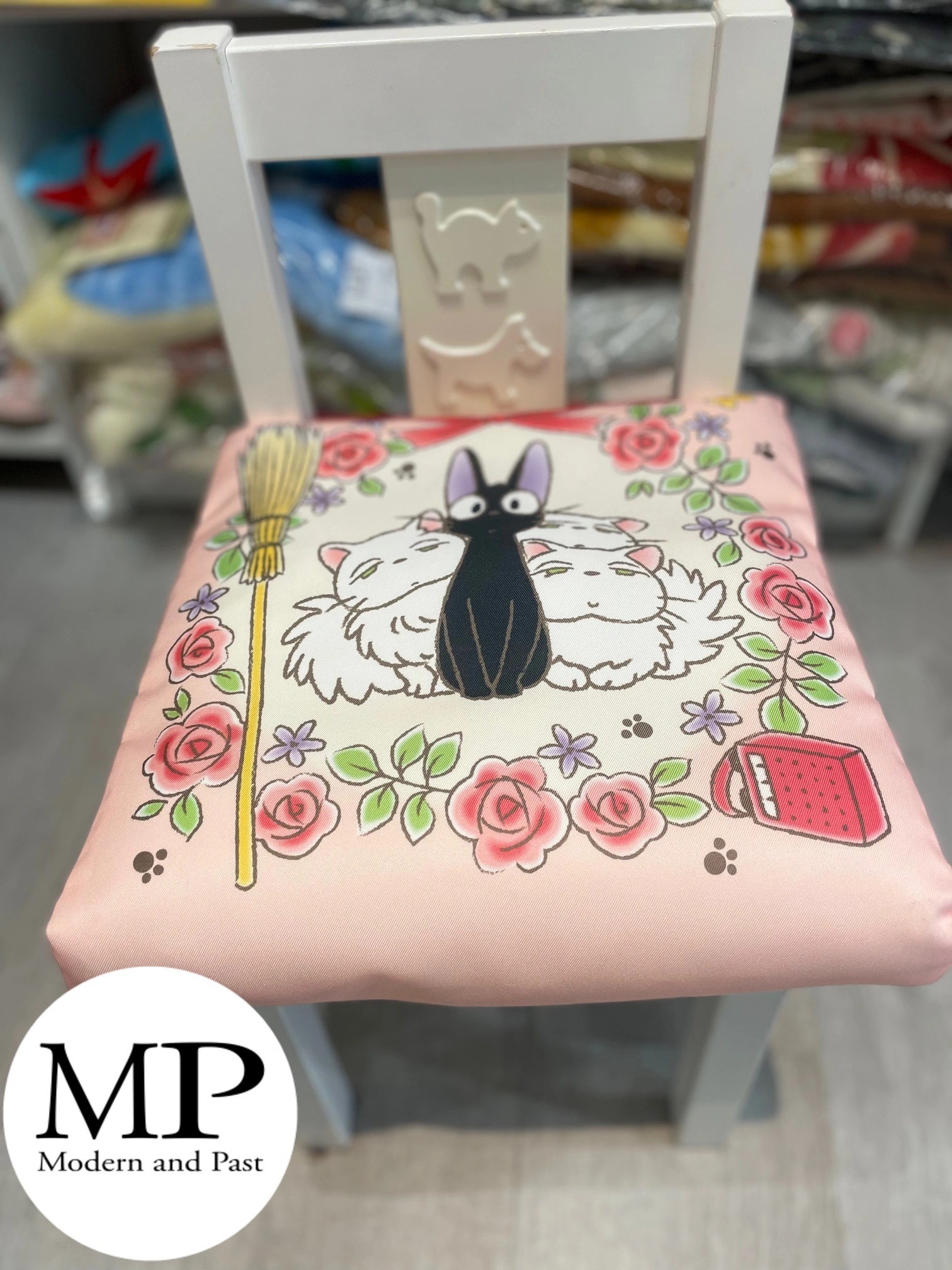 Modern and Past vous propose ce coussin de chaise Jiji et Lily, un accessoire confortable et décoratif inspiré du film Kiki la Petite Sorcière. Idéal pour les fans de Studio Ghibli, il ajoute une touche douce et magique à votre intérieur.