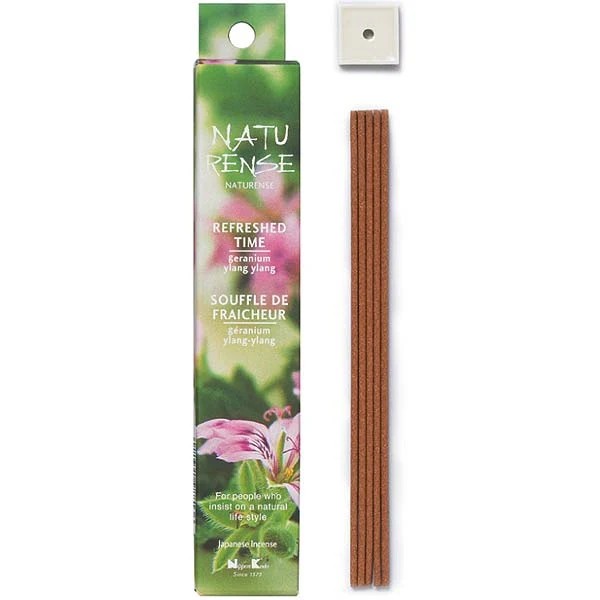Cet encens japonais Naturense Souffle de Fraîcheur associe les huiles naturelles de géranium et de ylang-ylang pour offrir une fragrance tonique, fraîche et revitalisante. Conçu par Nippon Kodo et fabriqué au Japon, il s’inscrit dans une démarche naturelle et épurée, idéale pour purifier l’atmosphère et retrouver une sensation de bien-être.