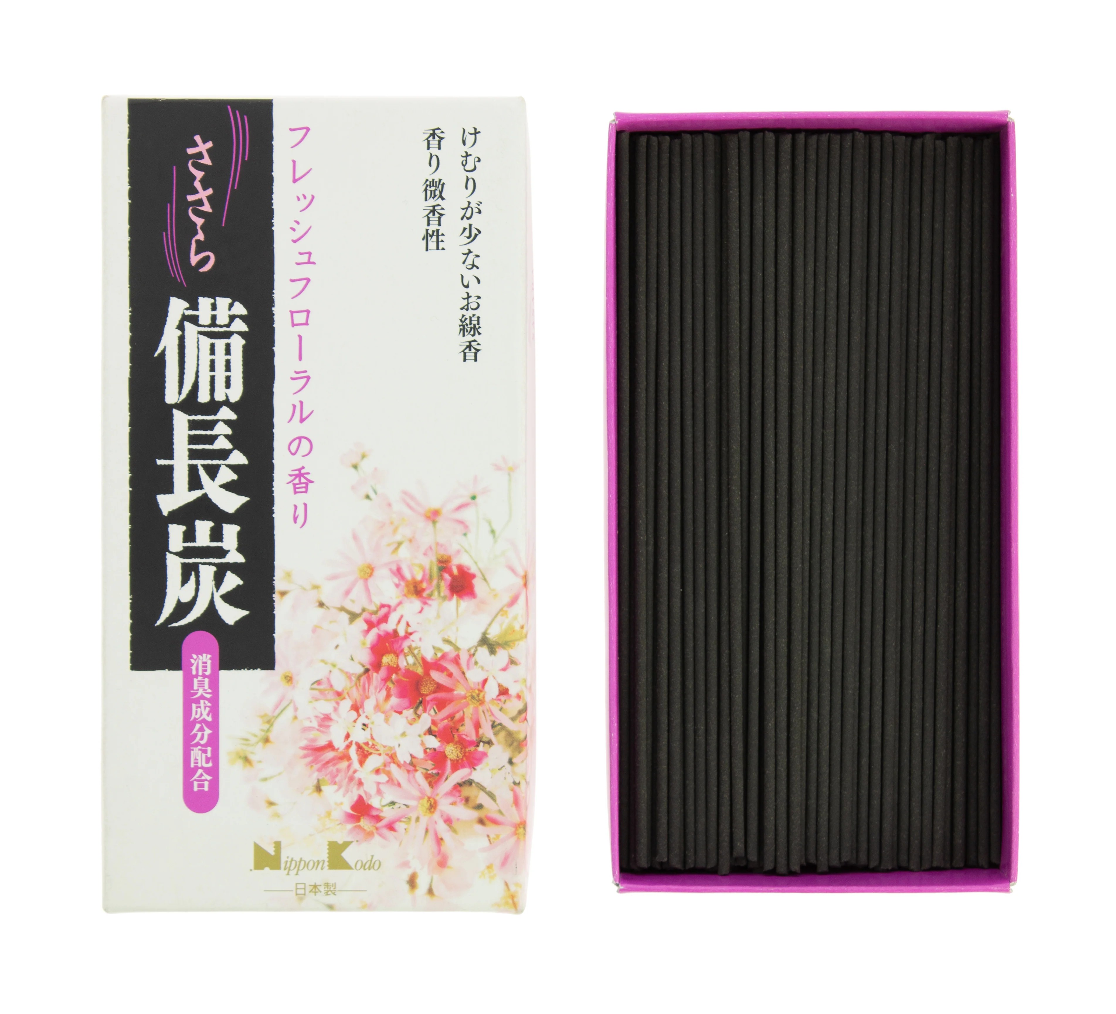L’encens Sasara Binchotan Fresh Floral est fabriqué à partir du prestigieux charbon Binchotan de Kishu, issu de la préfecture de Wakayama, reconnu comme le plus qualitatif du Japon. Cet encens se distingue par sa faible émission de fumée et par son effet désodorisant naturel, idéal pour purifier l’air en douceur.