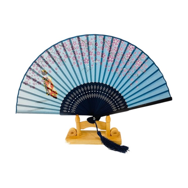 Les grues blanches, symboles de longévité, de paix et de bonheur dans la culture japonaise, se déploient avec élégance sur un fond bleu profond, rappelant le ciel et la sérénité. Cet éventail est idéal pour accompagner un kimono, un cosplay japonais ou sublimer un intérieur.