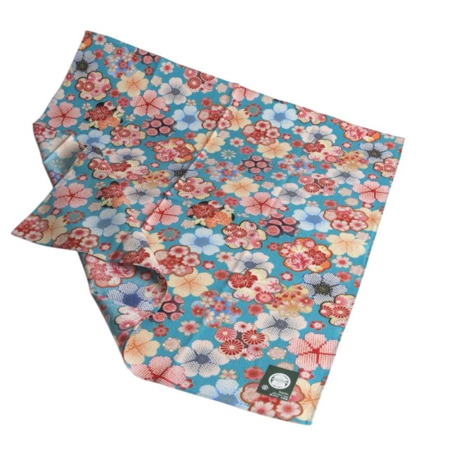Ce furoshiki en coton illustre un motif Patch Diamant bleu mêlant fleurs japonaises et inspirations géométriques traditionnelles. Grâce à son tissu en coton souple et résistant, il permet d’emballer vos objets de façon écologique, élégante et réutilisable. Fabriqué au Japon, il incarne parfaitement l’art du furoshiki, alliant esthétique, savoir-faire et polyvalence.