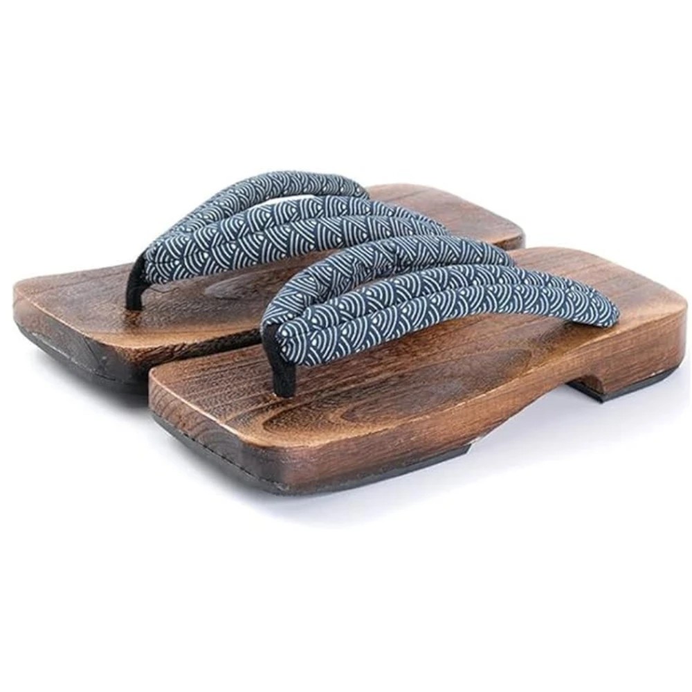 Découvrez ces geta japonaises pour homme, fabriquées en bois léger de paulownia pour offrir une marche agréable et naturelle. Leur motif Seigaiha, symbole de prospérité au Japon, apporte une touche élégante et traditionnelle à votre tenue.