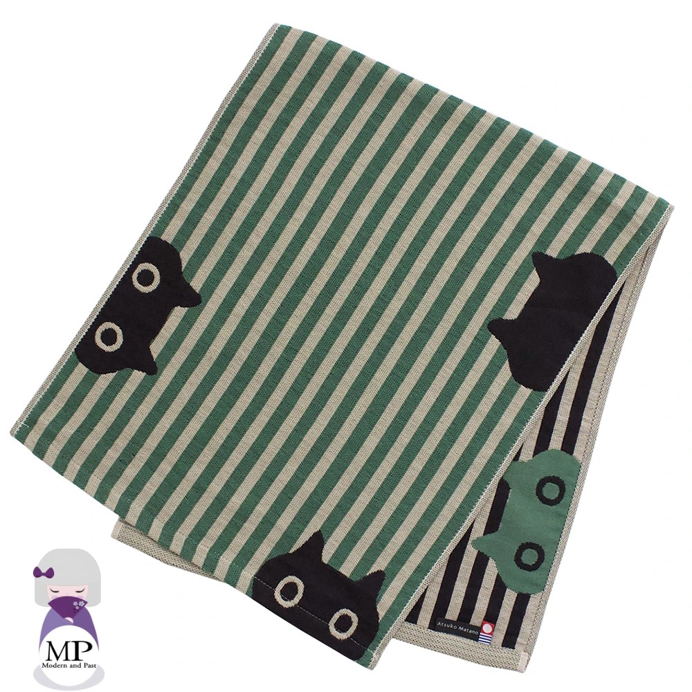 Craquez pour cette grande serviette japonaise en gaze de coton, issue de la collection MMST signée Atsuko Matano. Ce modèle associe des rayures vertes et blanches dynamiques à l’adorable chat Mémé, pour un rendu à la fois sobre, moderne et ludique.