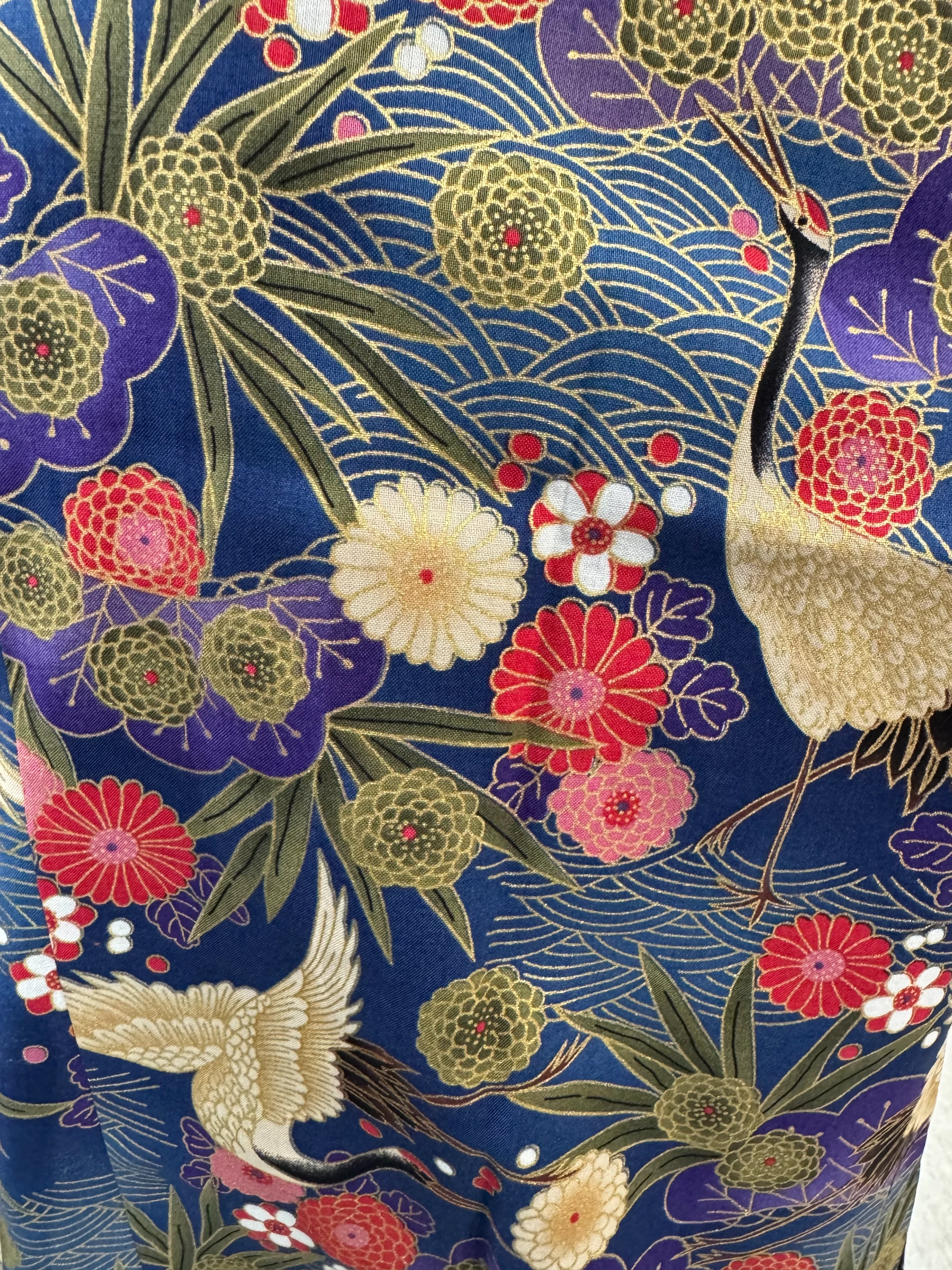 Apportez une touche d’élégance japonaise à votre dressing avec ce haori femme en coton japonais, fait main en France à partir d’un tissu japonais en coton. Son fond mauve met en valeur un décor raffiné de grues et de jardin floral, inspiré de l’esthétique traditionnelle japonaise.