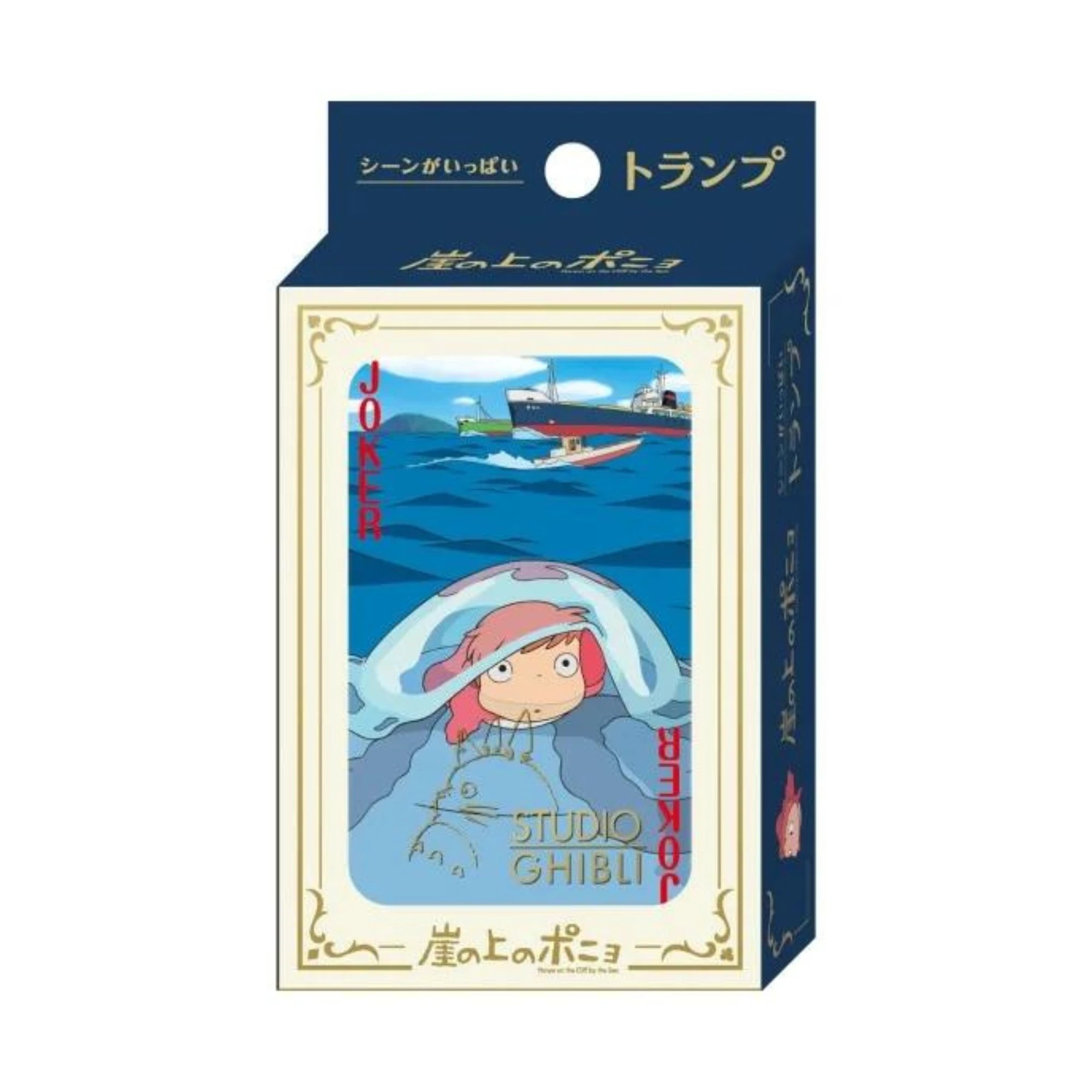 Amusez-vous en famille ou entre amis avec ce jeu de cartes à jouer Ponyo sur la falaise, inspiré du célèbre film de Hayao Miyazaki. Chaque carte est illustrée avec des scènes emblématiques du film, pour prolonger la magie de l’univers Studio Ghibli jusque dans vos moments de jeu.
