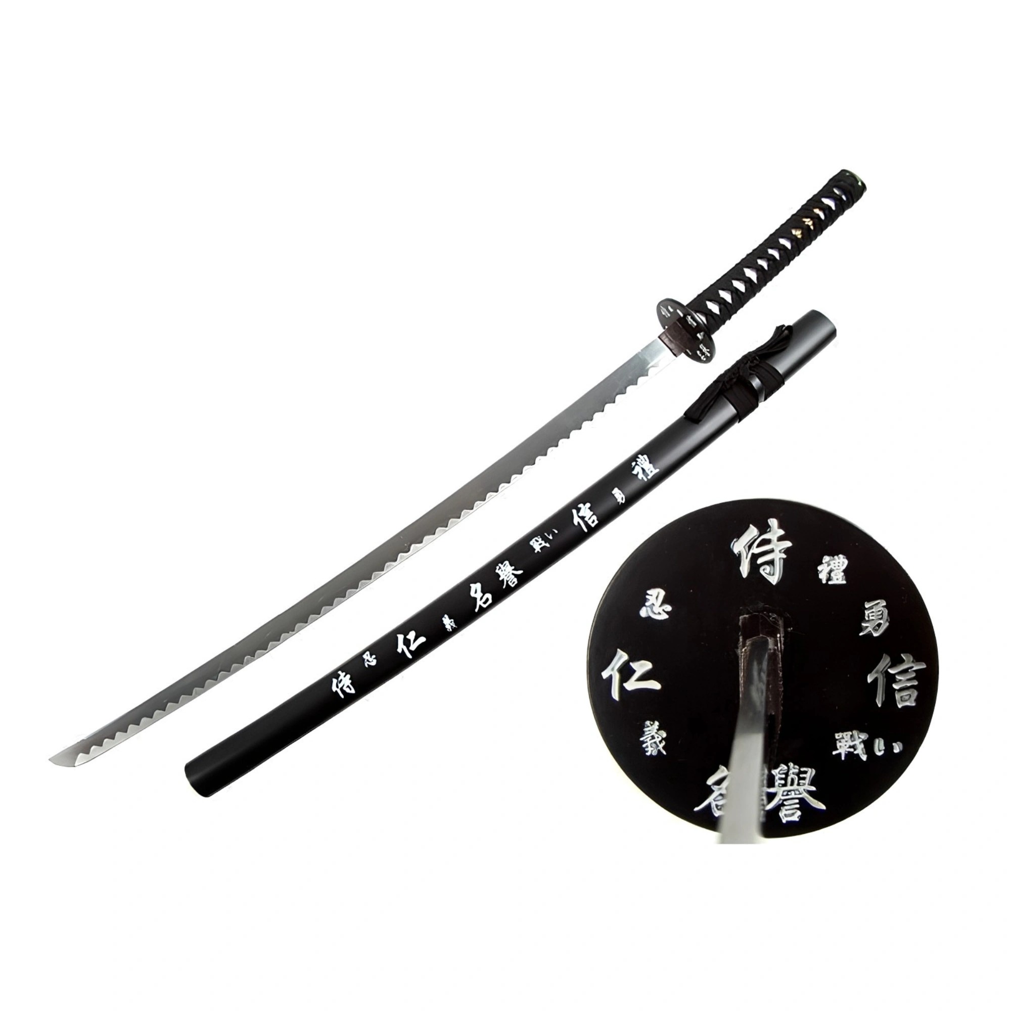 Ce katana japonais noir incarne la sagesse et la puissance des samouraïs.