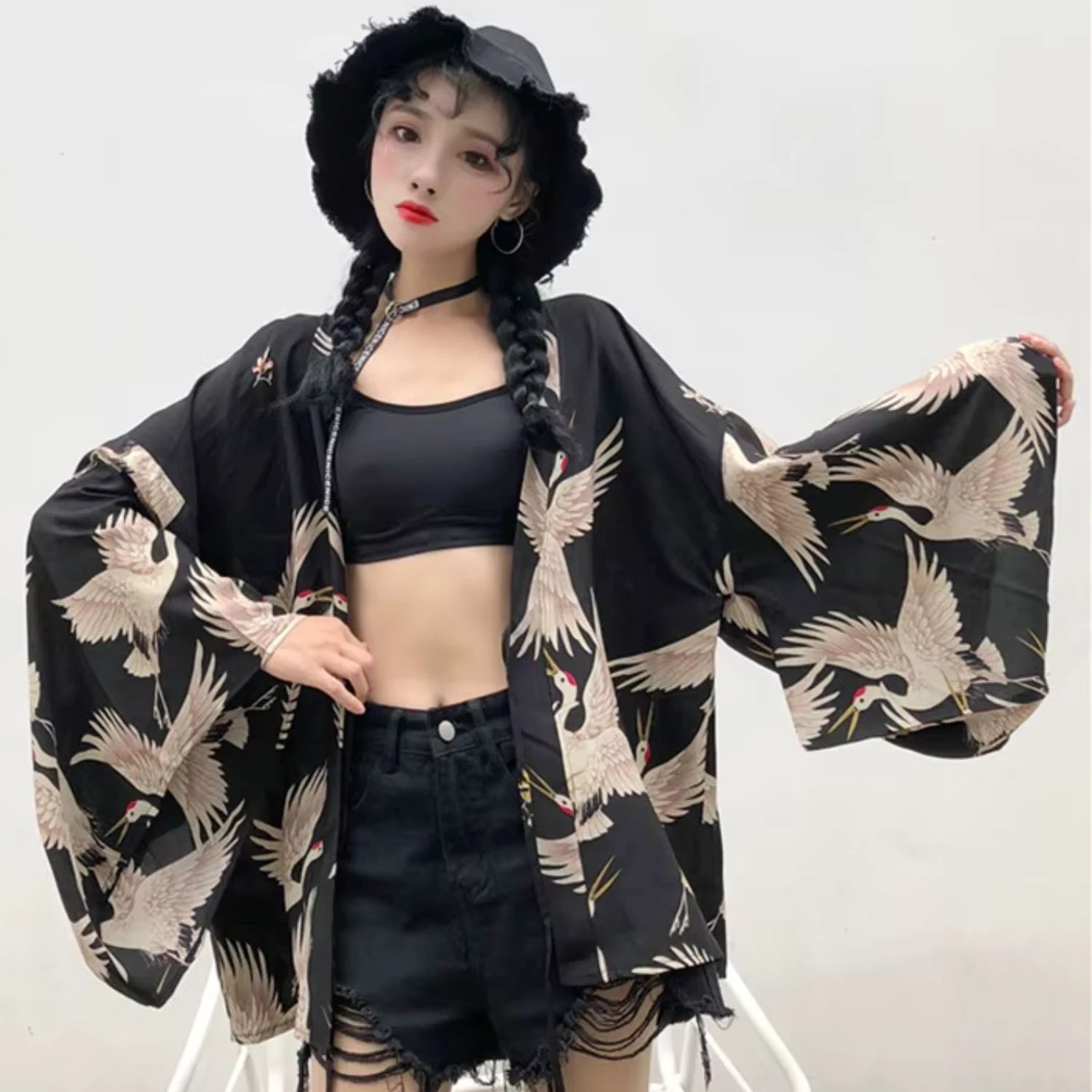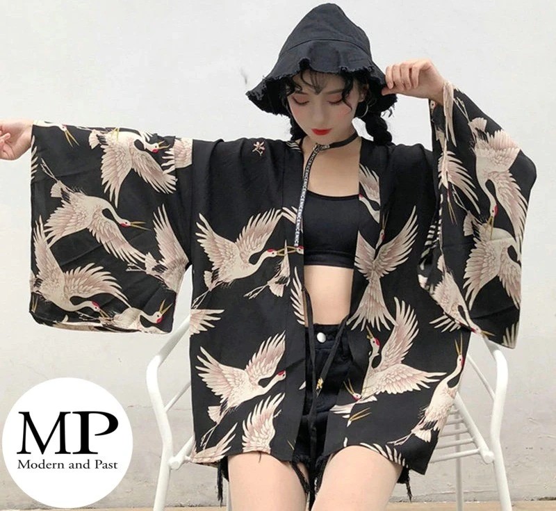 Ce kimono moderne japonais est une pièce élégante mêlant mode japonaise, confort et style. Son imprimé de grues blanches, symbole de longévité, de loyauté et de pureté dans la culture japonaise, apporte une touche raffinée et poétique à votre tenue.
