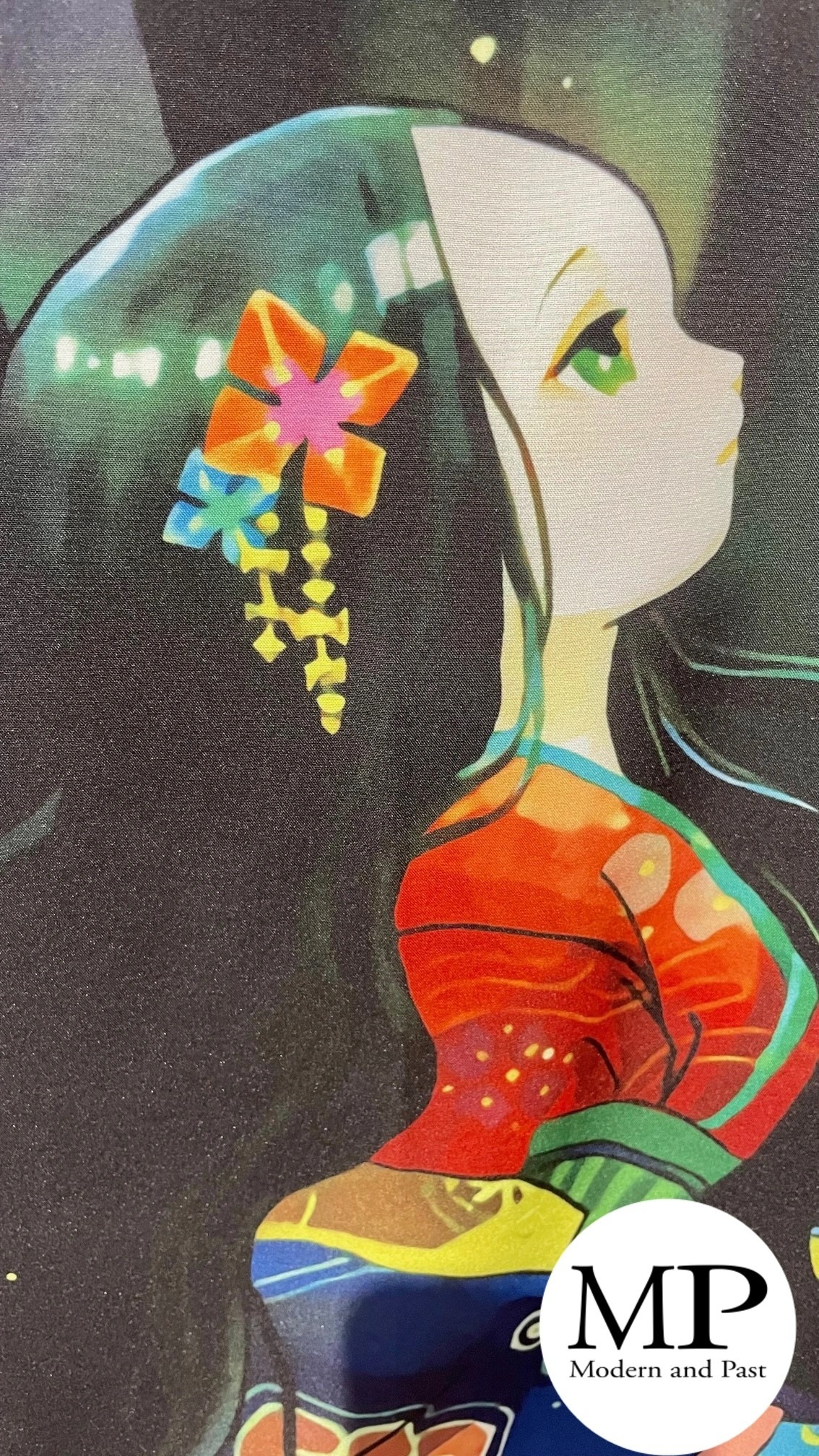 Plongez dans l’univers de la street fashion japonaise avec ce kimono moderne au style affirmé. Son motif représente une jeune femme en tenue traditionnelle, évoluant dans une forêt de bambous, créant un visuel artistique et poétique.