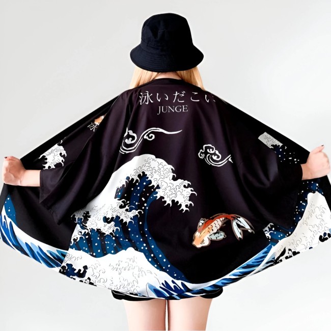 Conçu dans un polyester de haute qualité, ce kimono offre un tombé fluide, un toucher doux et un confort optimal au quotidien. Parfait pour composer un style japonais moderne, casual ou streetwear.
