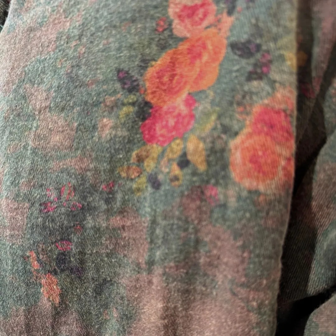 Ses tons kaki et marron sont sublimés par de délicats motifs de fleurs, présents à l’extérieur comme à l’intérieur, pour un rendu harmonieux et chaleureux. Conçu pour être porté ample, il convient parfaitement aux silhouettes allant du 36 au 40.