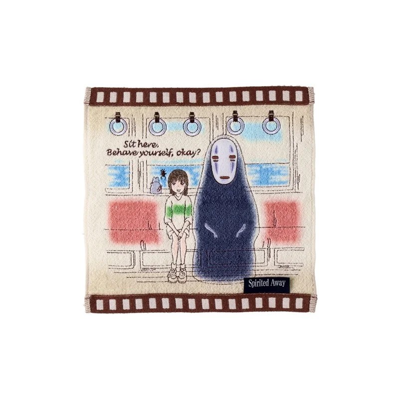 Modern and Past vous propose cette mini serviette Cellulo représentant Chihiro et Sans-Visage assis dans le train, une scène emblématique du film Le Voyage de Chihiro.