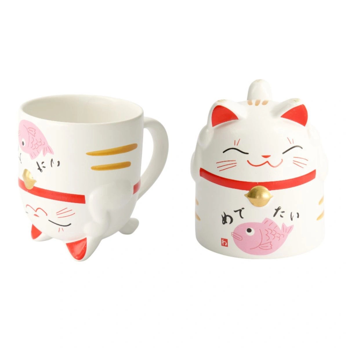 Son design original représente un Maneki Neko, symbole japonais censé attirer la chance et la prospérité. Ce mug se distingue par sa forme unique : posé à l’endroit ou à l’envers, il devient une véritable pièce décorative.