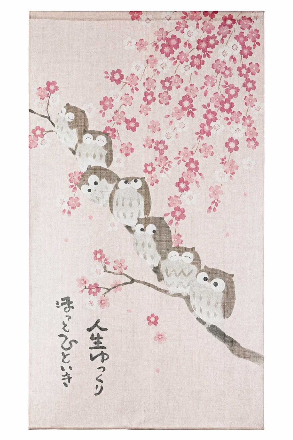 Noren japonais hiboux et fleurs de cerisier : une touche poétique du Japon dans votre intérieur