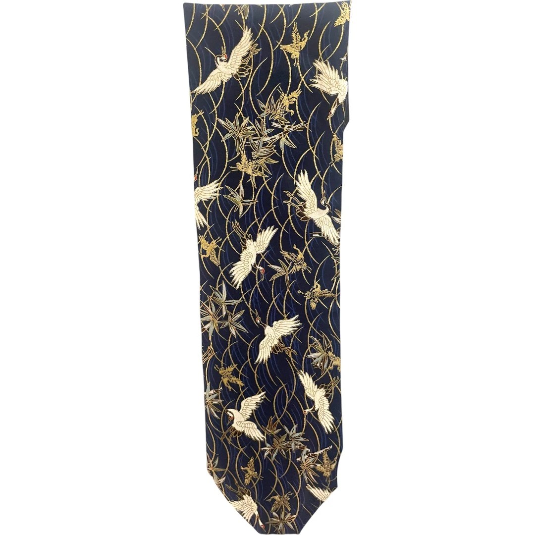 Cet obi japonais en coton présente de magnifiques motifs de grues, symbole de longévité et de bonne fortune au Japon. Son style raffiné mêlant bleu profond et accents dorés en fait une pièce très élégante. Réversible, il offre un recto décoré et un verso noir uni, idéal pour varier les styles selon l’occasion.