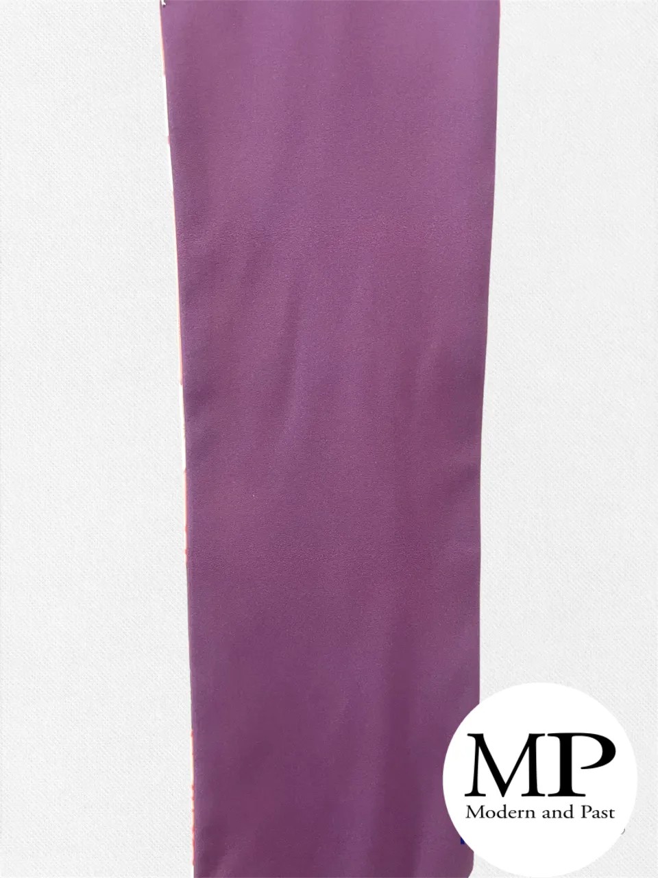 Le recto affiche un motif floral harmonieux sur un ton rose pâle, tandis que le verso présente un violet uni, permettant de varier les styles selon l’occasion.