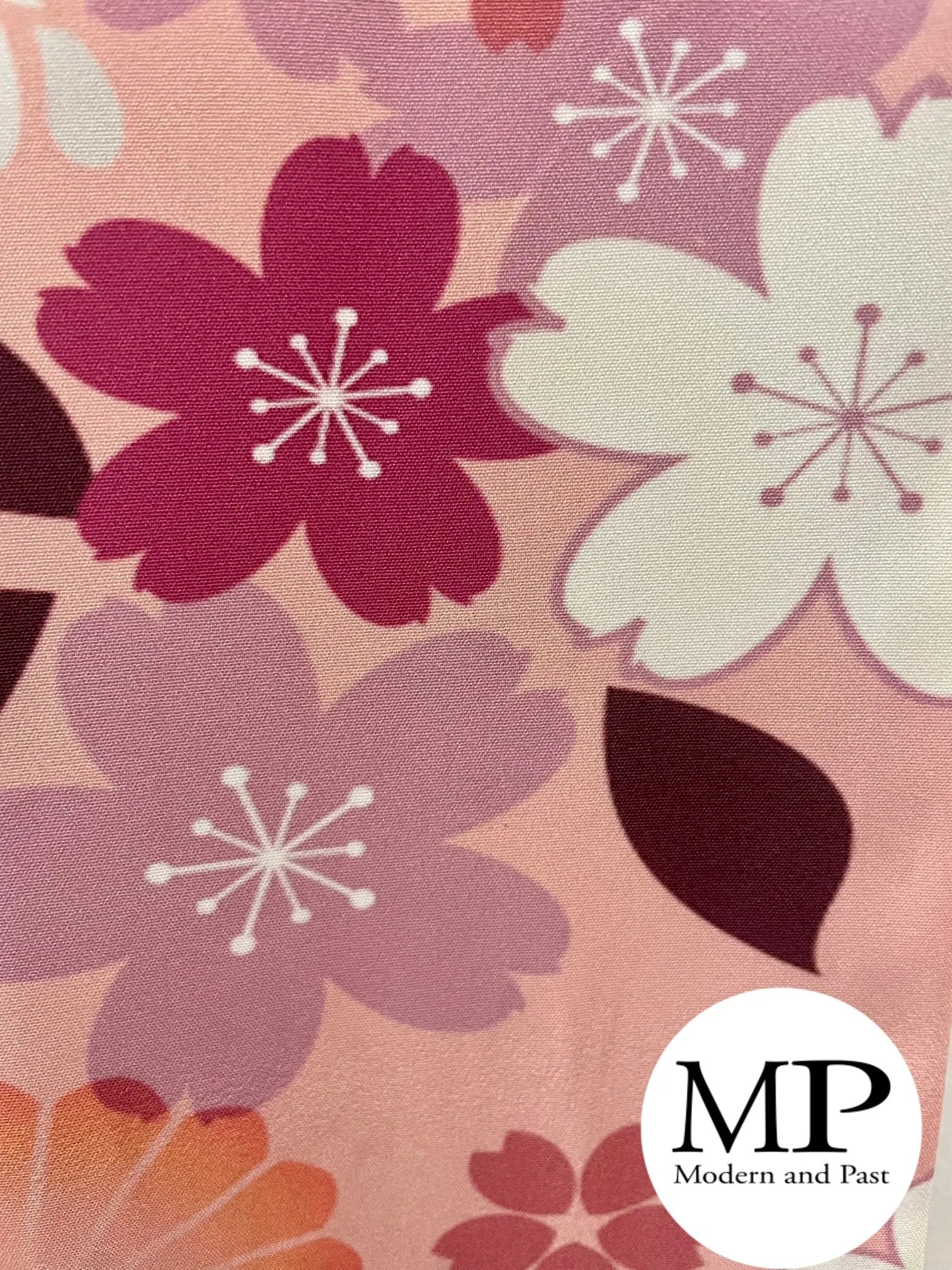 Modern and Past vous propose cet obi japonais réversible rose pâle, décoré de motifs floraux inspirés de l’art traditionnel japonais. Parfait pour compléter un kimono, un yukata ou une tenue moderne d’inspiration japonaise, il apporte une touche à la fois féminine, délicate et authentique.
