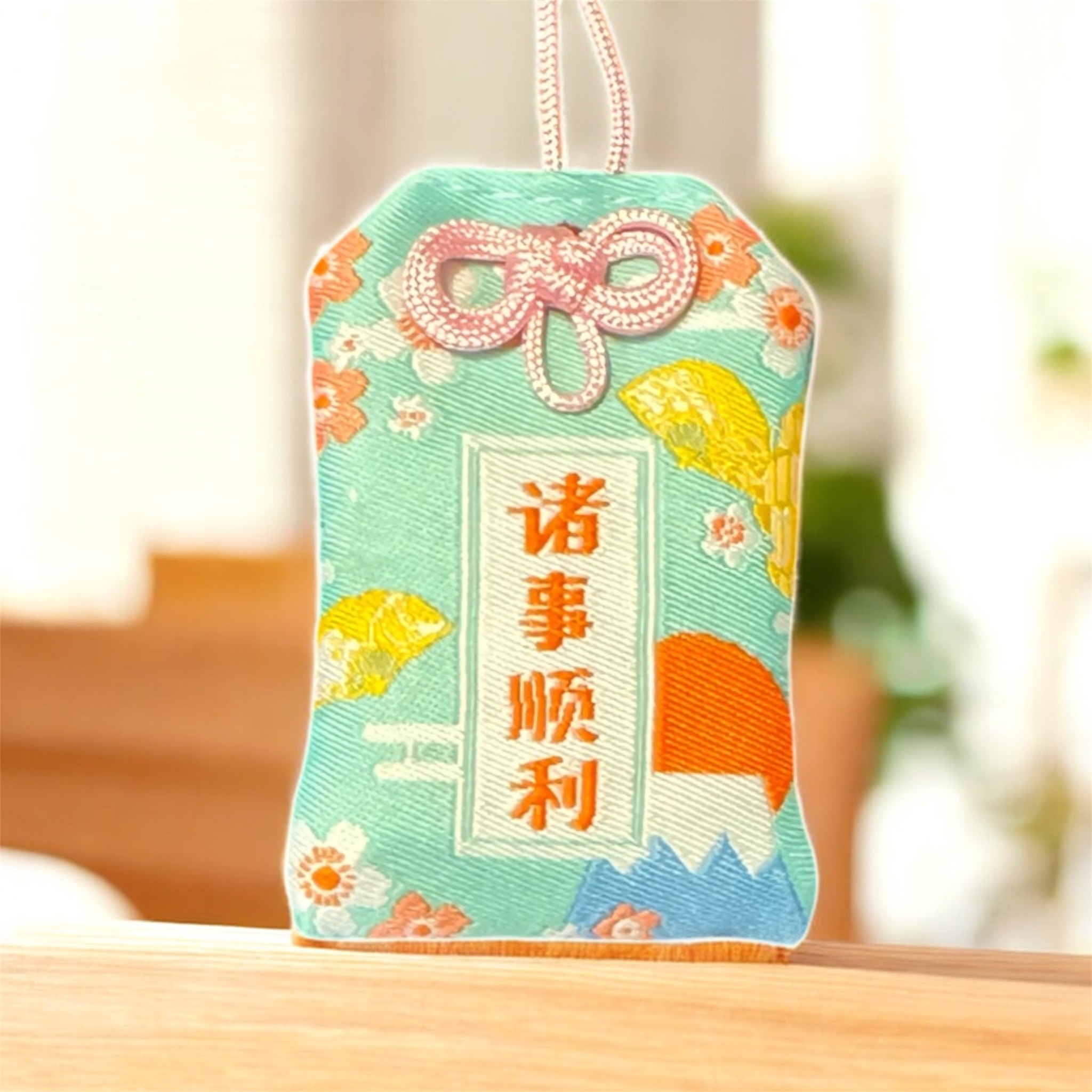 Cet Omamori japonais de couleur vert turquoise est un porte-bonheur traditionnel conçu pour accompagner la réussite dans les affaires et l’accomplissement des projets du quotidien. Fabriqué en tissu, il associe symboles forts du Japon et messages de prospérité.