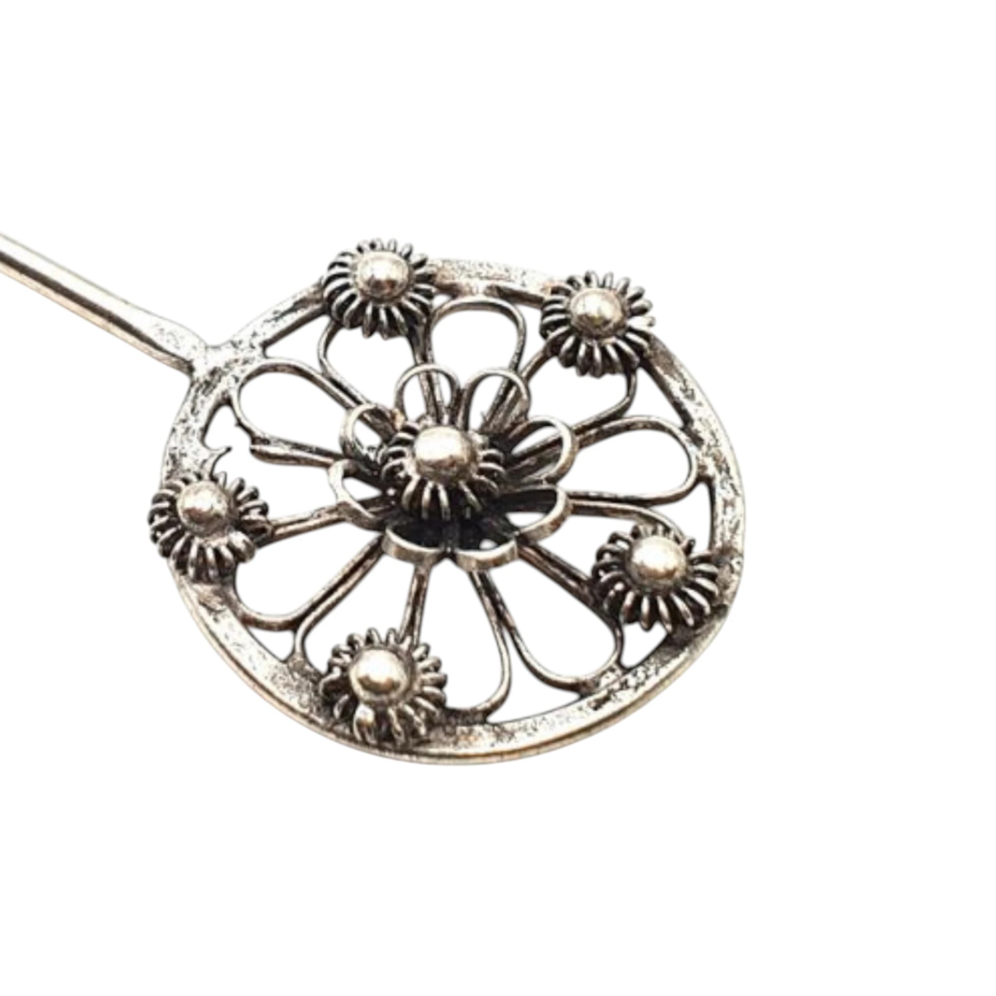 Idéal pour structurer un chignon ou ajouter une touche décorative à votre coiffure, ce pic s’utilise facilement et se fond dans la chevelure, laissant visible uniquement son motif sophistiqué.