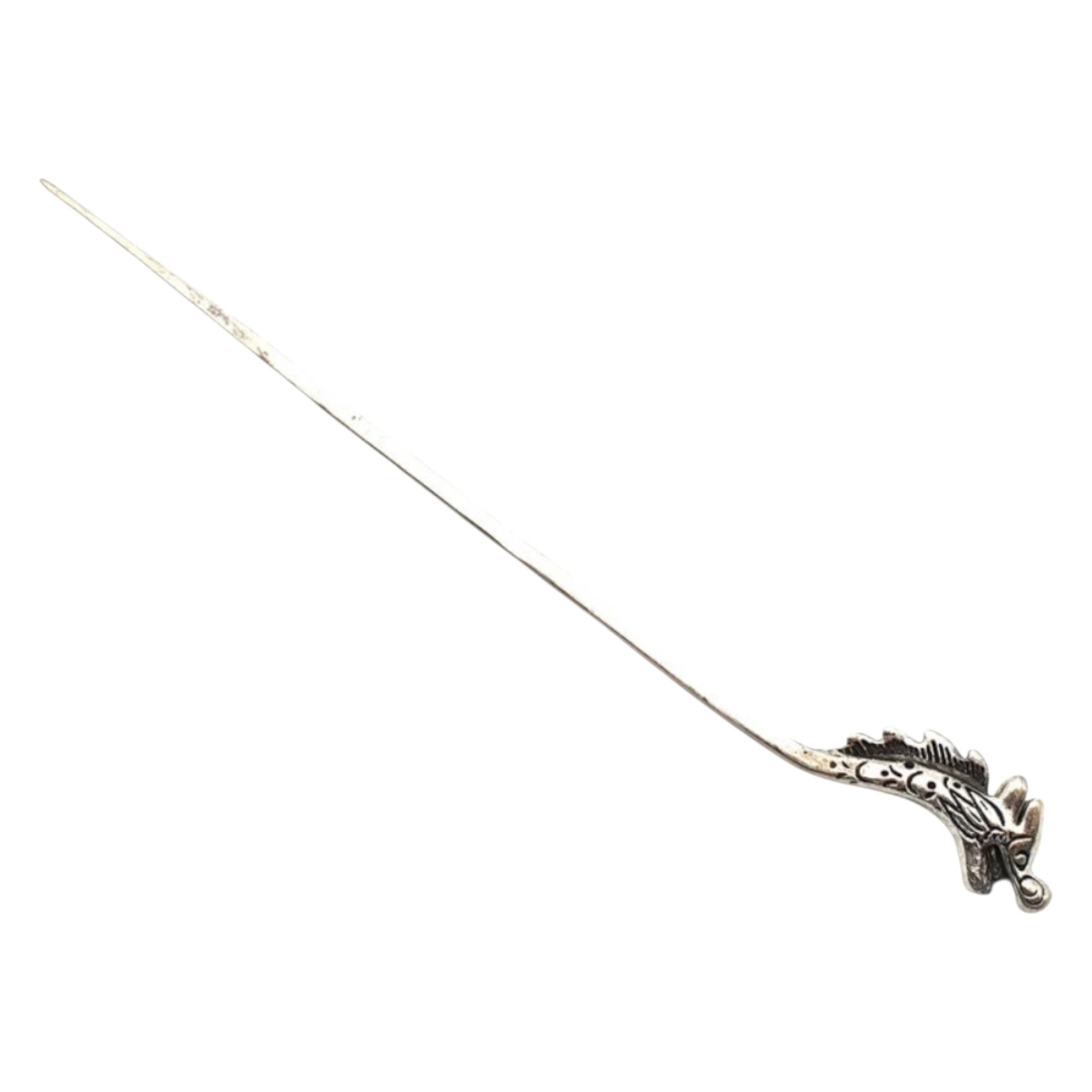 Fabriqué à la main au Japon, ce pic est conçu en cuivre blanc (90 %) et argent (moins de 10 %). Sa forme fine permet de le glisser aisément dans vos cheveux longs, en laissant visible son ornement raffiné.